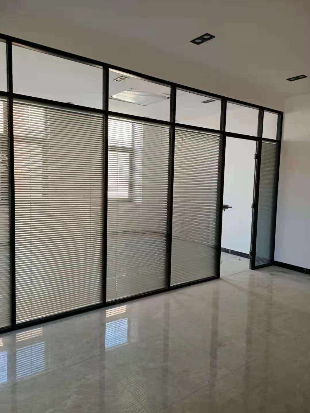 3、玻璃隔斷門(mén)框內(nèi)側(cè)預(yù)裝有密封條,隔聲效果及密封性提高。更可加裝門(mén)底密封條,使隔音系統(tǒng)完成無(wú)缺。玻璃隔斷高質(zhì)量的進(jìn)口百葉簾片可安裝在兩層玻璃內(nèi)部,不容易臟,免清洗。